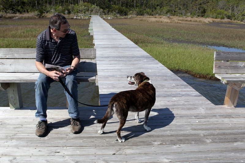 This morning, we visited the very interesting Cape Sound Waterfowl Museum and Heritage Center on Harkers Island, bought an exquisite duck decoy (the carving of which is apparently one of the primary business pursuits in these parts), hiked along a stunning 2-mile trail along the Core Sound and adjacent maritime forest and willow pond, dined on fabulous double cheeseburgers at a local restaurant, and are packing to go queue up for the Cedar Creek Ferry to Ocracoke, where we will stay tonight.  Total driving miles today are 15 (excluding the excursion this morning), but the total travel time will be about 5 hours, due to the ferry ride and connections.