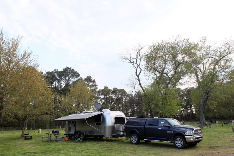 The 75 or so miles to James River State Park today were absolutely beautiful. I can’t think of anywhere that Spring is depicted so perfectly as in the foothills of middle Virginia. Curvy country roads flanked by white dogwoods, the startling magenta of miss-named redbud trees, the neon green of shimmering new leaves, the occasional carpet of pale lavender flox, and blue mountains in the distance — all wild, natural and completely humbling. I can’t believe the James River is so long! Remember, this is the same miles-wide river that we traversed by drawbridge and tunnel near Norfolk three days ago, the same broad river that swept by Chippokes Plantation, Williamsburg and Jamestown, and now here it still is reaching almost to Lexington! What a river!