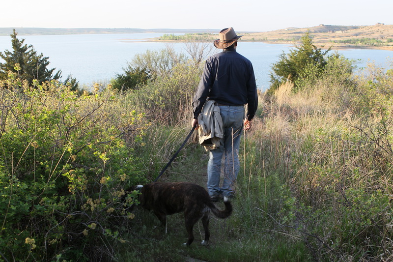 We decided to leave a day earlier than planned, as it was raining in Atlanta and it seemed advisable to drop the tax return at the post office and just keep driving. That meant we had to hustle to get all the last-minute things done 24 hours sooner, like wash all the dishes and laundry, shop for groceries, wash the Airstream inside and out, pack all of our worldly belongings into the customized storage bins, stabilize the house, run down to West Point with my sister to have lunch with Daddy who will be 102 next month (he was missing when we got there; we found him down by the creek wrestling wisteria vines off wax myrtles and generally cleaning up the creek bank — he was a little startled, but delighted to see me when I sneaked up and tapped him on the shoulder). Last night we had a farewell dinner with our dear neighbor, Jennie, who is ultimately in charge.