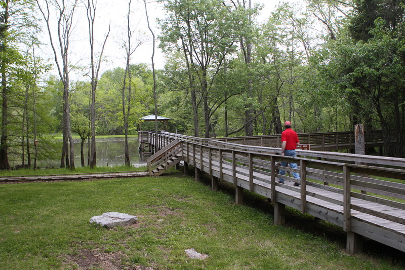 We got out of town at about 10:30 this morning, and arrived at George L. Smith State Park in Twin City GA in early afternoon. The park is named after George L. Smith II, who went to high school in nearby Swainsboro and served in the Georgia House of Representatives from 1959 until his untimely death in 1973. It is a small but lovely state park in the middle of nowhere, surrounding a 450-acre-ish black-water pond that no one would ever dream of jumping into (even if it weren’t strictly prohibited). The water is pitch black in color due to the tannic acid produced by the thousands of cypress trees growing out of the shallow water, eerily beautiful draped in Spanish moss and almost choking the lake from daylight.