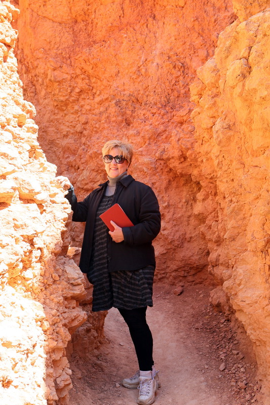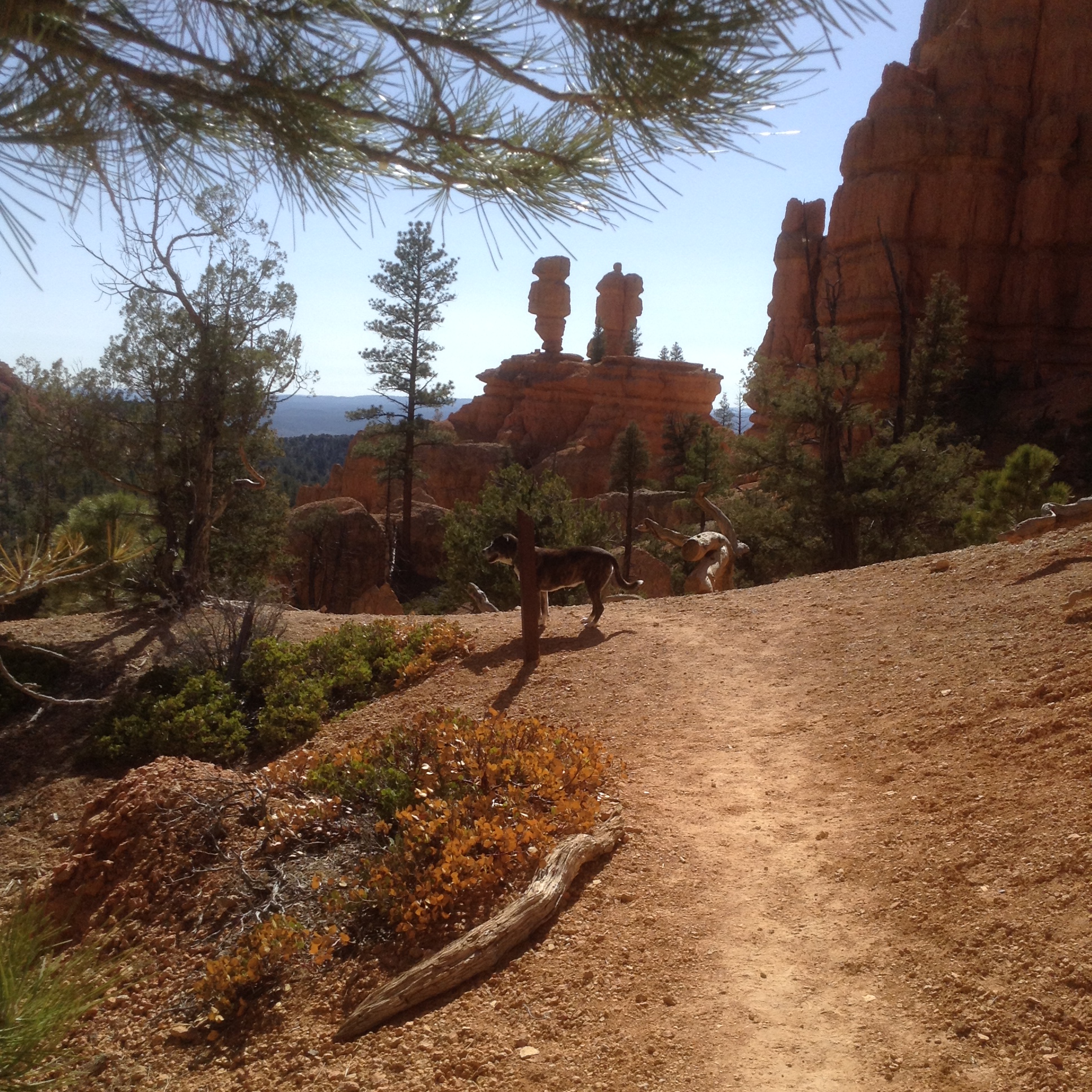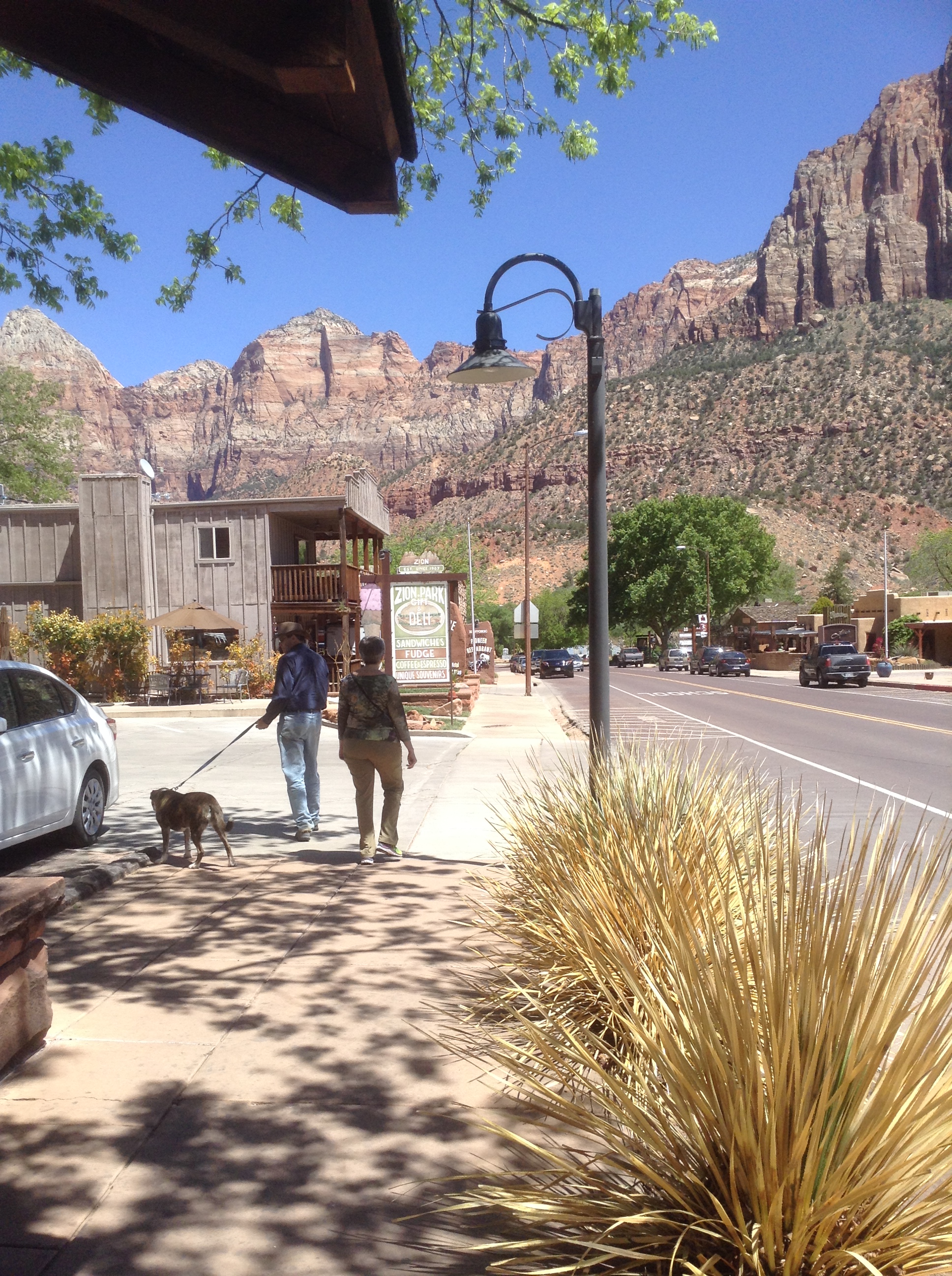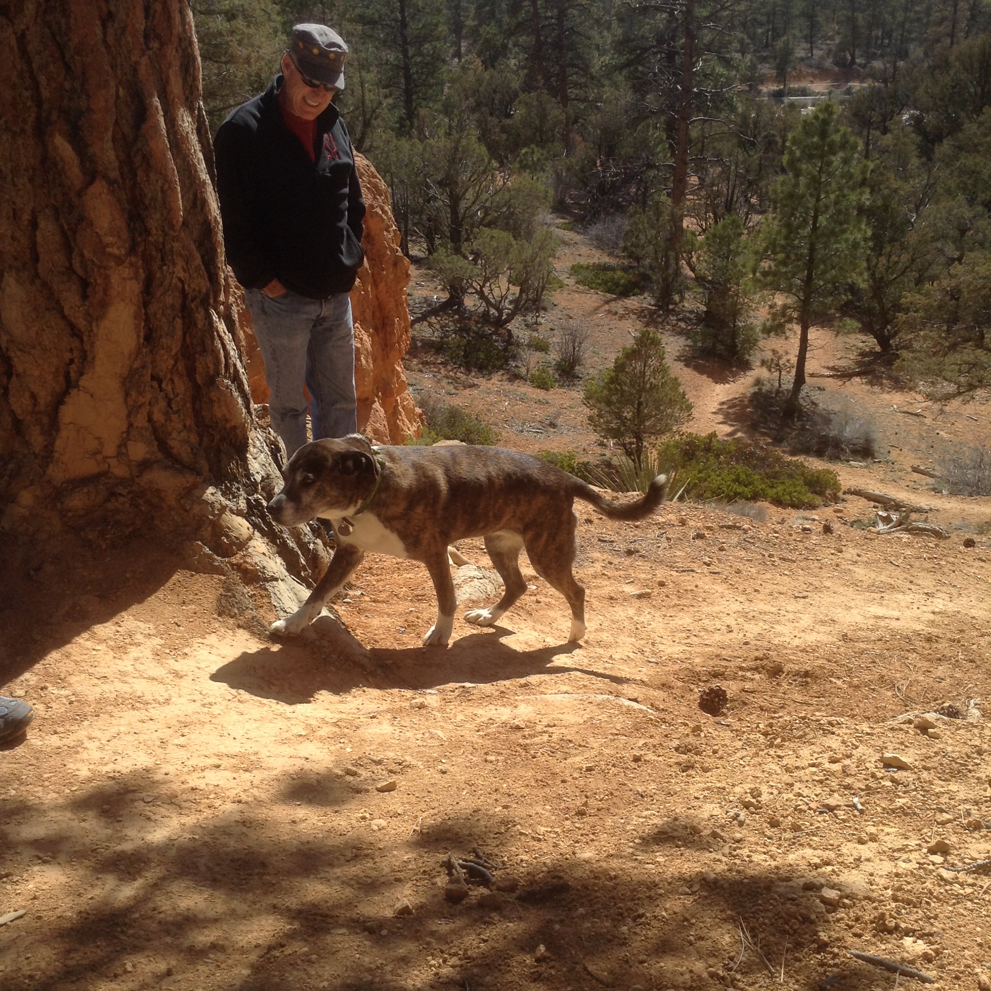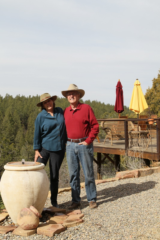 Yesterday we had a breakfast feast with Jack and Barbara in their kitchen. Nothing like eggs and bacon and English muffins with jam and toast to send one packing into the desert. We double checked to be sure we were not forgetting anything: Clean laundry? Check. Brad’s new cowboy hat? Check. Lots of bottled water? Check. Doris? Check. Good directions out of Durango? left, right, left, left, left. Check. Off we went. About an hour later as we cruised along at 55 MPH in fearful obedience of the traffic laws, here came a blue Subaru along side of us, going 90 or so, with Barbara frantically waiving us over! OMG! We had forgotten all of Doris’ luggage — food and treats. Barbara was amazing to chase us down with it. It was great to see her again — we were already suffering withdrawal pangs. A second set of good-byes and we hit the road for good.