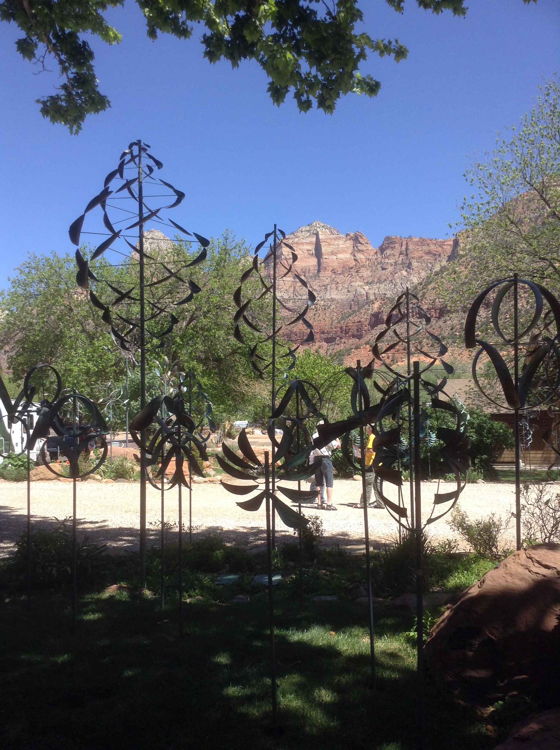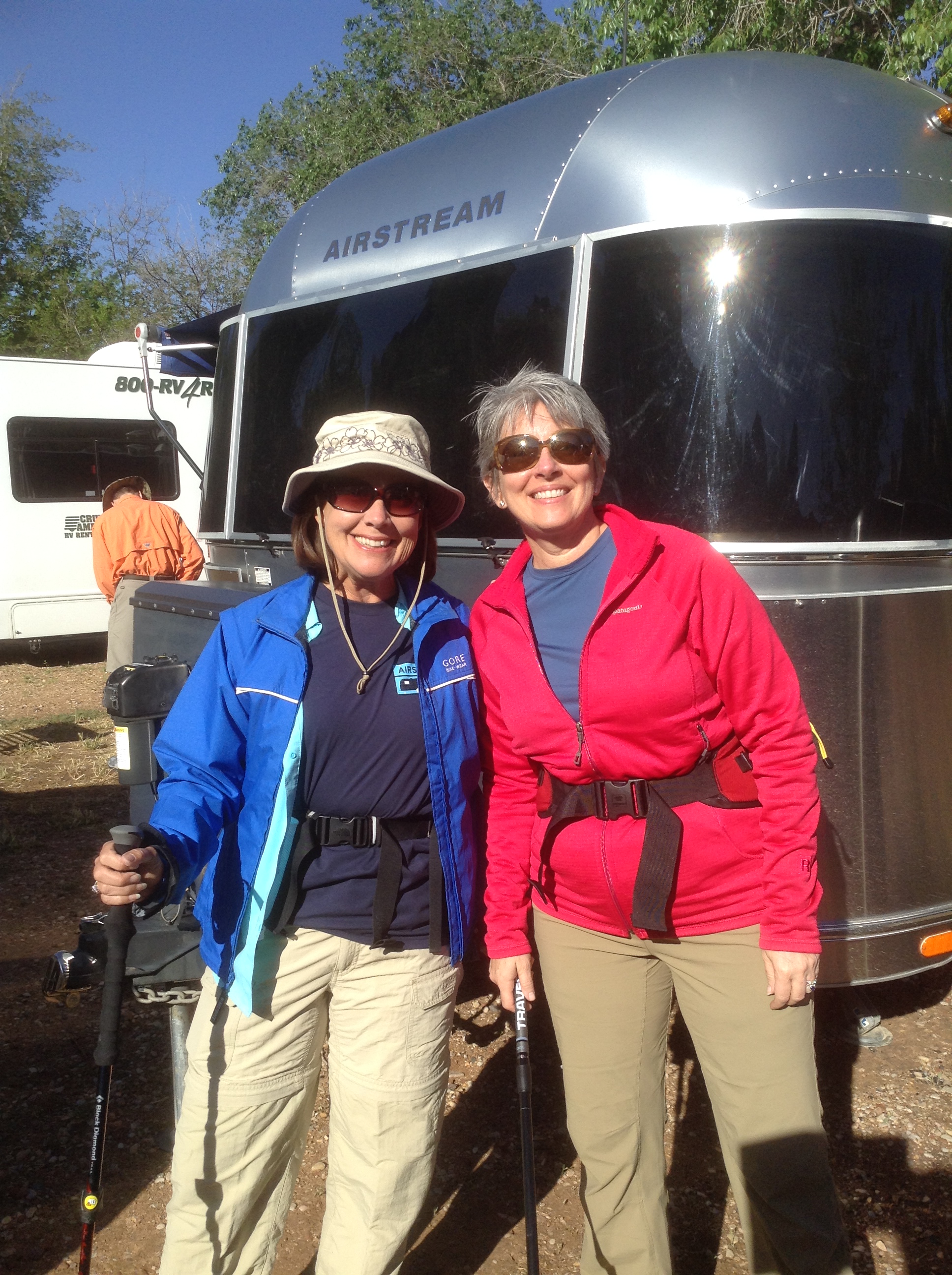 Lake Powell is the result of the impressive yet controvercial Glen Canyon Dam, completed in 1963 over the upper part of the Colorado river. Our campsite is part of the Lake Powell Resorts and Marinas in an area called Wahweap. It is beautiful and looks out over the bank of the bright blue lake, as we have come to expect! Last night we invited our neighbors, a couple from the Netherlands, to join us for a martini to watch the sunset. They are on a two-month visit across the US in a rented RV. They gave us a tour of their rig and we showed them Towed Haul. It was a fun evening. We grilled hotdogs for dinner and slept the sleep of the dead — glad to be among some green trees. Today we’ll tour Glen Canyon Dam — or at least Brad will if we can’t find a solution for Doris.