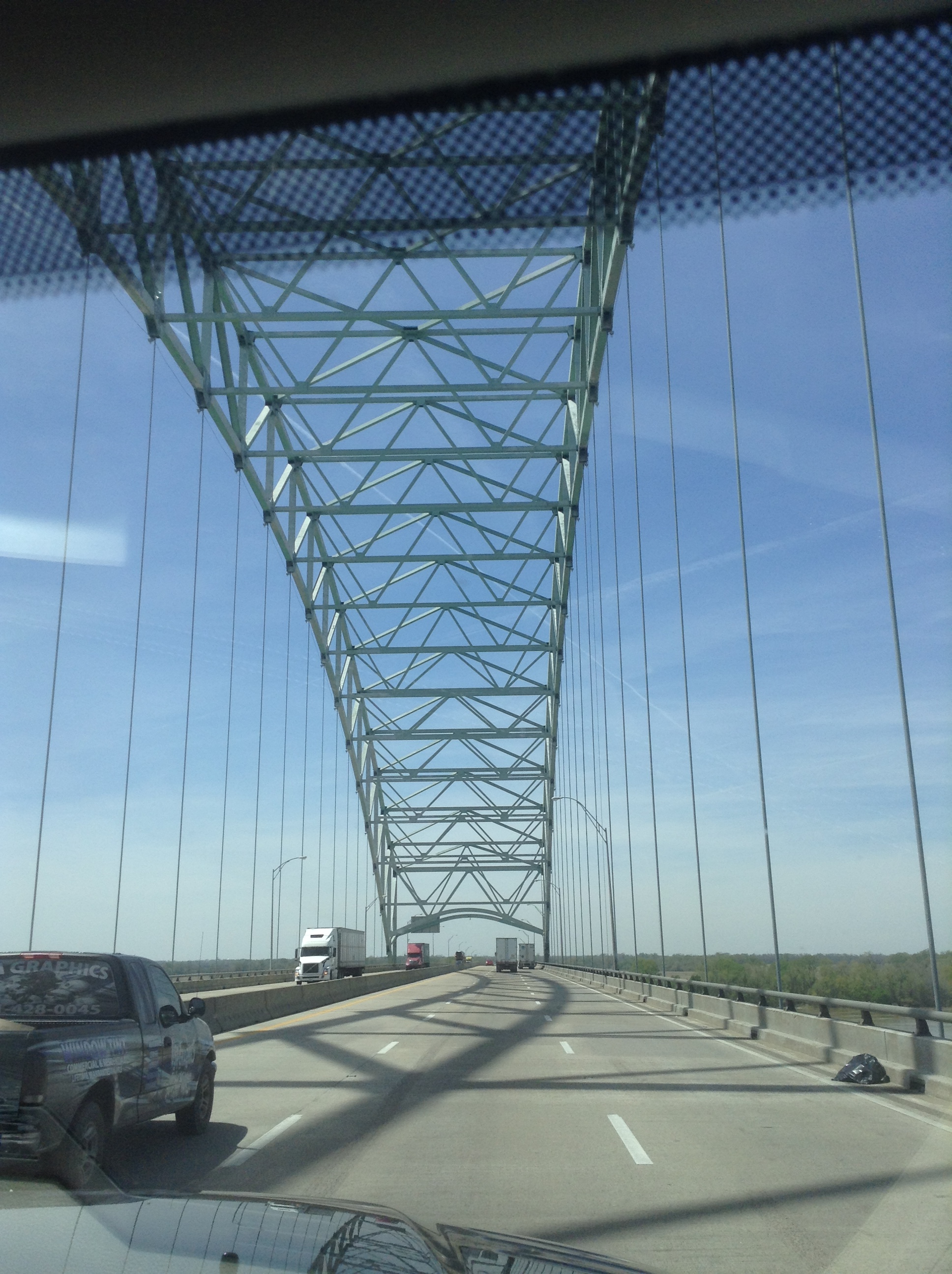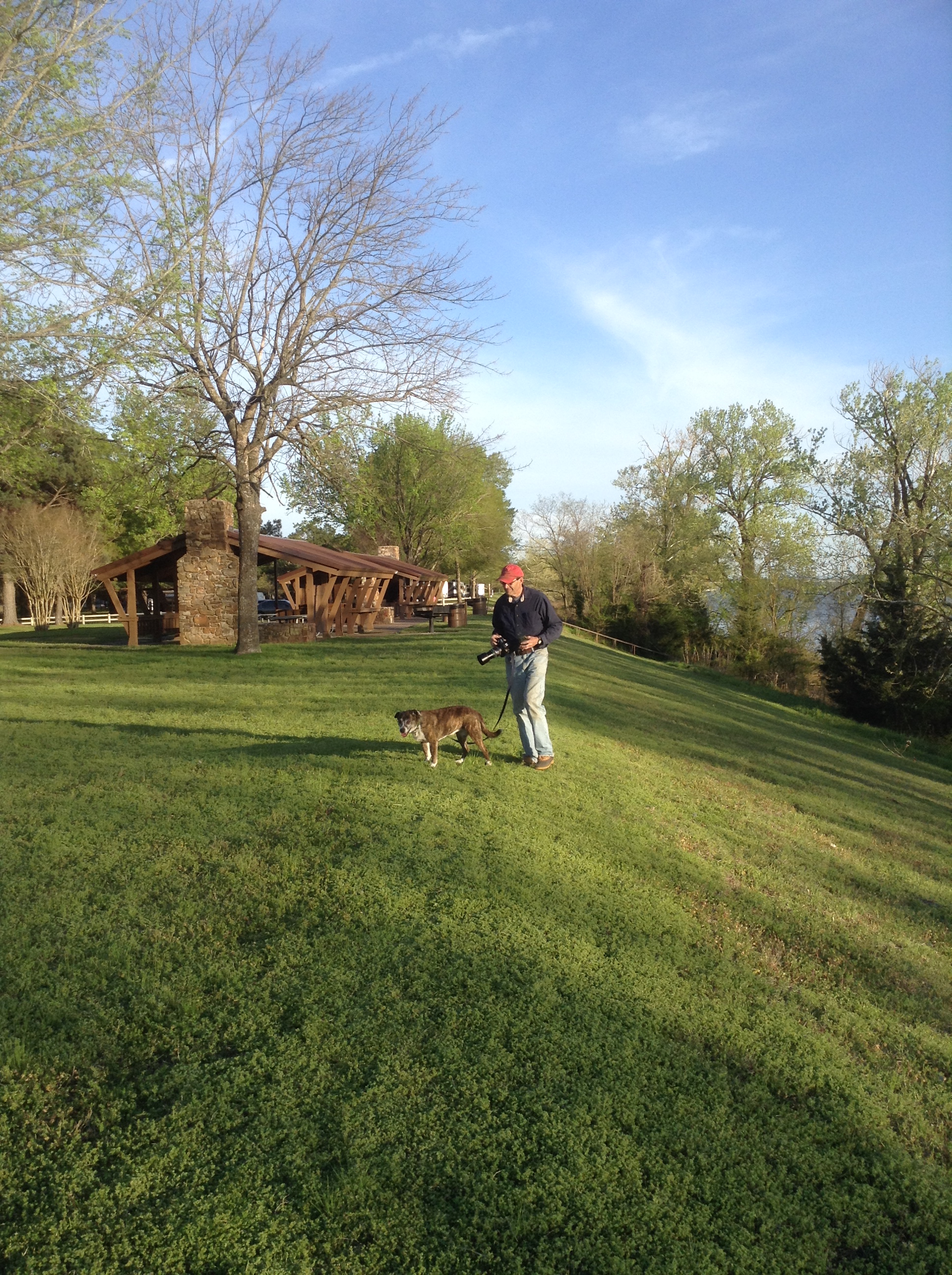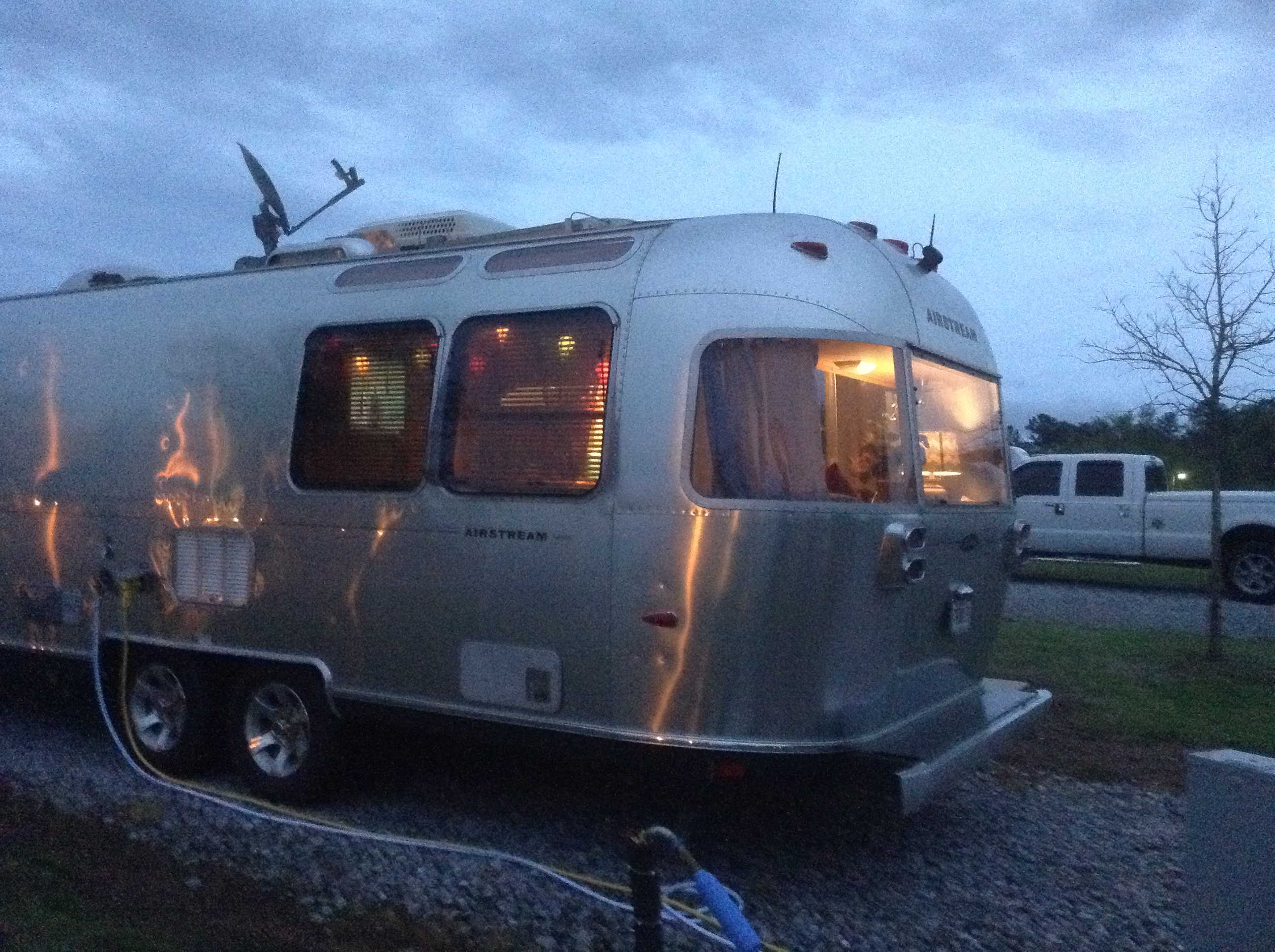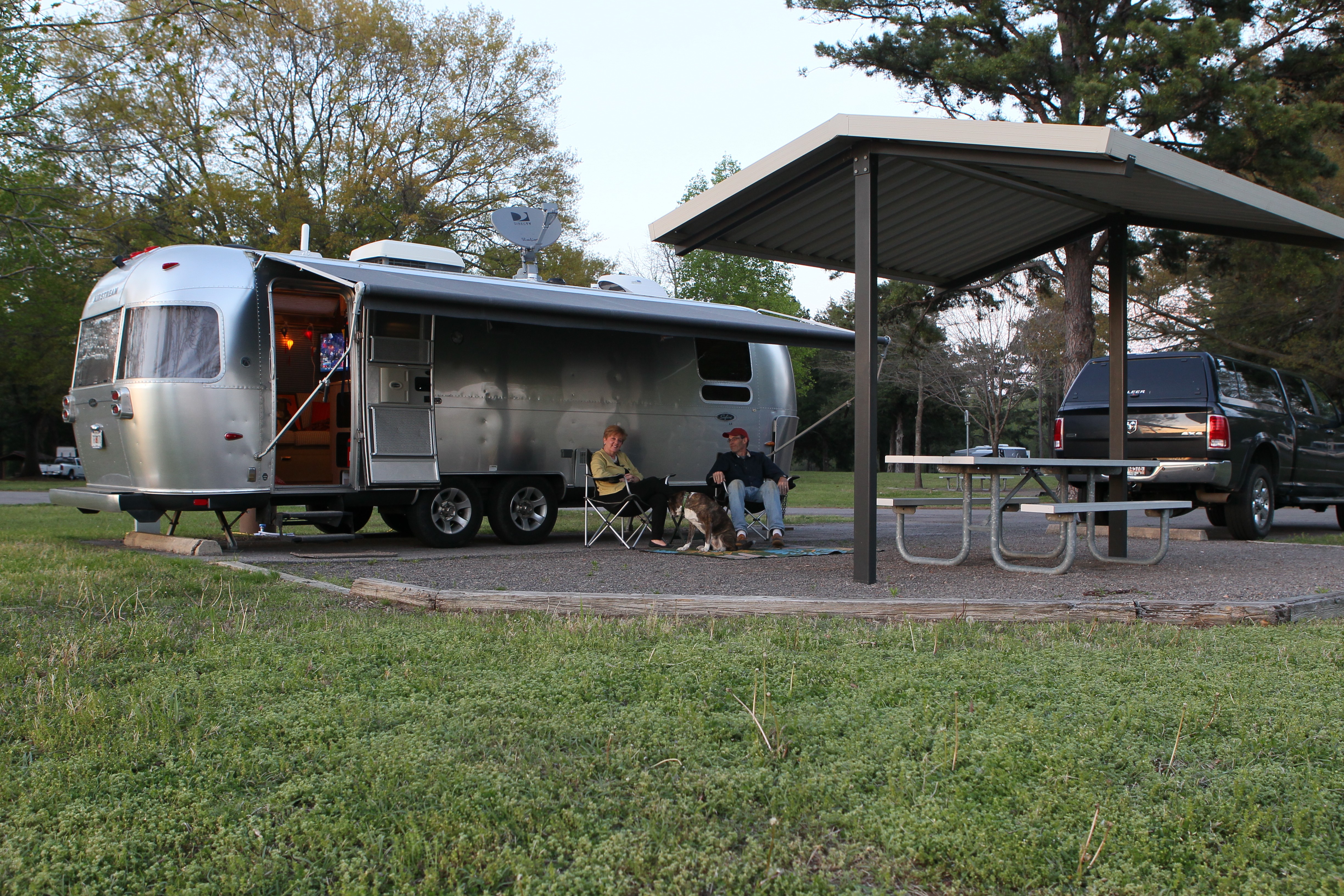 April 21, 2014. After breakfast yesterday, we had a brief set-back. Brad detected a slow leak in one of the Airstream tires — he checks all the tires every morning because a flat would create a major problem. “We” were changing the tire when a nice man from a nearby campsite came by to offer help. We had a delightful conversation with Cliff, a retired pilot who served in Viet Nam. He and his wife live in Alaska in the summer and in Wisconsin in the winter and spend a lot of time traversing the country in their RV. He gave us some good advice for our next trip. We ceded him our campsite, which was better than the one they were in. We also left our water filter hooked to the spigot — enjoy it with our compliments, Cliff! Happy trails!