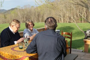 April 23, 2017. Today was a cold, rainy day. After Nancy and her contingent left for Atlanta at 10 am, we retreated to the Airstream, made coffee and read for a while. Then we visited Clarke and Marcia and Bo at their home in Valle Crusis, which Brad had not yet seen. They are renting a house on the top of a mountain with views on two sides that would set wet hair on fire. They are tempted to buy the house and I really hope they can make it work. With 8 acres of beautiful lawn and woodland, it would be a great place for Bo to explore as he grows up!
